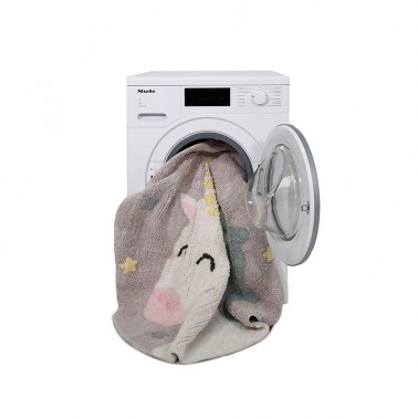 Hecha a mano, cada alfombra es única. No lleva tintes tóxicos y cumple toda la normativa de seguridad.