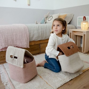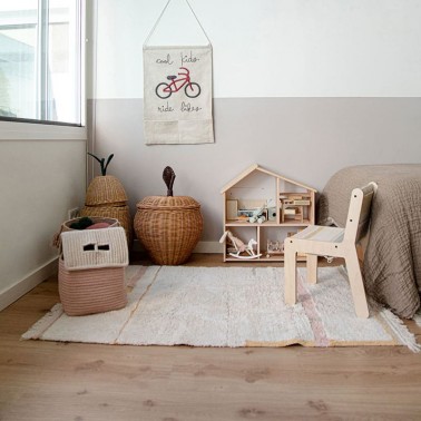 Es una alfombra ligera y flexible y puedes combinarla con el puff, cestas y cojines de la colección.