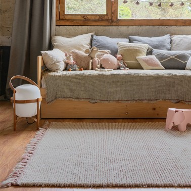 Para que los niños y niñas mayores de 3 años disfruten de la suavidad y calidez de la lana en sus dormitorios. Colores tenues sobre el tono blanquecino característico de la lana de Nueva Zelanda.