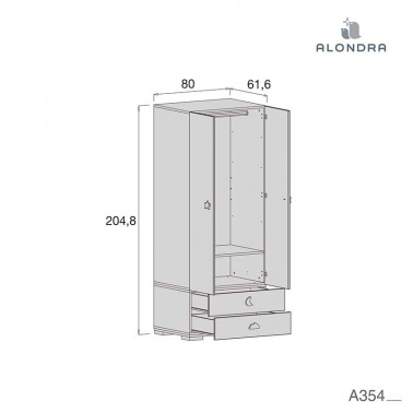 Ancho 80 cm x fondo 61,6 cm x alto 204,8 cm