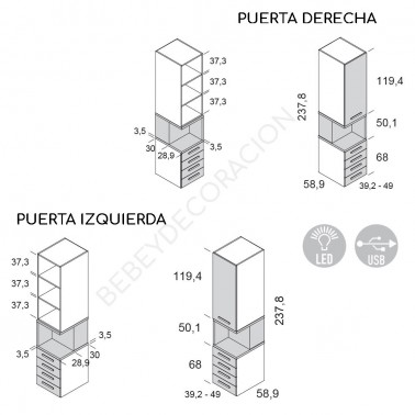 Elige el largo entre las medidas ofertadas en la imagen x 58,9 cm fondo x 237,8 cm alto.
