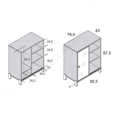 - 80,50 cm ancho x 43 cm fondo x 97,2 cm de alto (patas fijas)