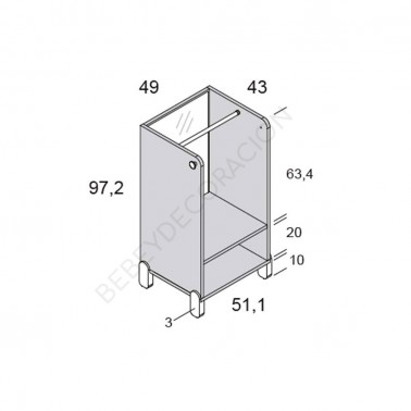 - 51,10 cm ancho x 43 cm fondo x 97,2 cm de alto (patas fijas)
