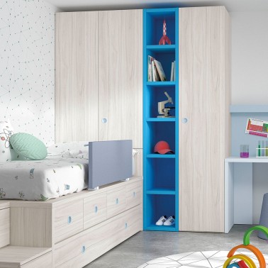 Armario para habitación infantil o juvenil con puerta plegable y arcón inferior.