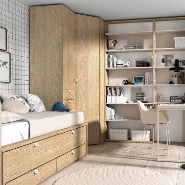 La estructura está realizada en tablero melamínico: es un tablero de aglomerado de partículas de madera con un revestimiento de melamina que da color y vida al mueble.
