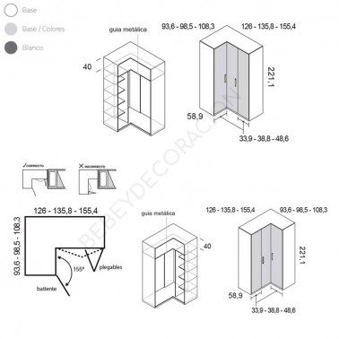 Armario de rincón con puertas plegables, en varias opciones de medidas y acabados.