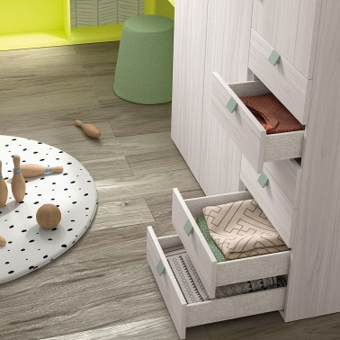 Armario para habitación infantil o juvenil de una puerta y cajones en la parte inferior.