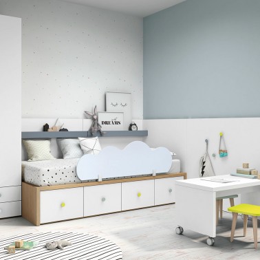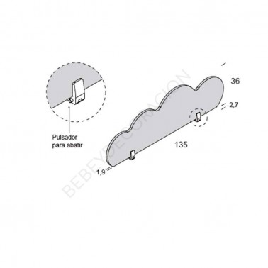 Una barrera para evitar las caidas de la cama, es abatible y tiene forma de nube.
