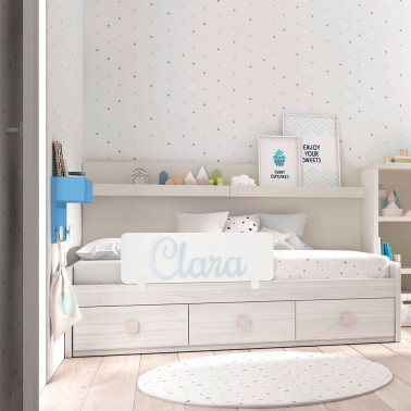 Barandilla con forma recta que se se sujeta en los largueros de las camas de Ros.