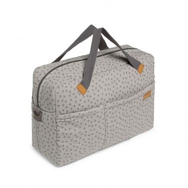 Para colgar en la silla o llevar al hombro tiene una tira bandolera con broches a presión. Además tiene 2 asas de mano.