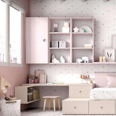 La estructura está realizada en tablero melamínico: es un tablero de aglomerado de partículas de madera con un revestimiento de melamina que da color y vida al mueble.