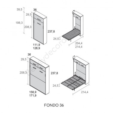 Opciones de cama: para colchón de 90x180, 90x190, 105x190, 135x190 cm y de 150x190 cm.