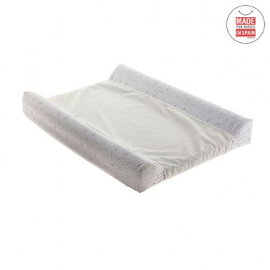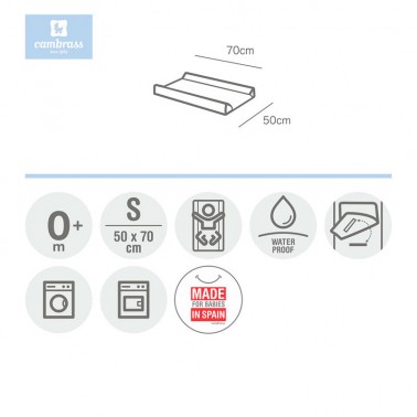 Dispone de una pieza de rizo que se adapta a éste con un práctico velcro para permitir el fácil desenfundado y lavado, es de algodón 100% con un acabado impermeable que garantiza el confort del bebé. Mide 31x85 cm.