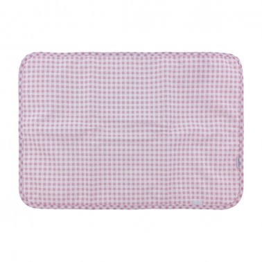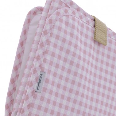 Cambiador plegabla para llevar en el bolso. En cuadritos vichy en blanco y rosa.