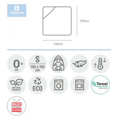 Está fabricada con fibras de TENCEL™. Son fibras botánicas y ecológicas, que evitan la aparición de alergias o irritaciones en la piel del bebé.