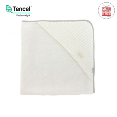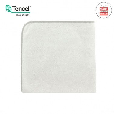 Esta capa de baño se diferencia del resto porque está elaborada con TECNEL, fibras botánicas y ecológicas que evitan la aparición de alergias e irritaciones. No retiene la cal del agua y se gana en suavidad.