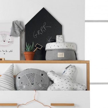 Modelo León en gris, blanco y negro. En tejido punto 100% algodón.