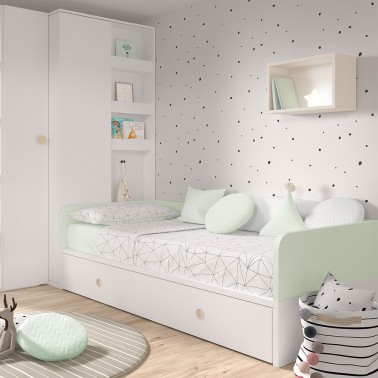 Tejido punto jersey y Panamá 100% algodón. El modelo redondo y triángulo tiene un repunteado en zig-zag.