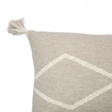 Los cojines de tricot Bereber se presentan en dos versiones. Este es el modelo Oasis en color lino. Con flecos en las esquinas