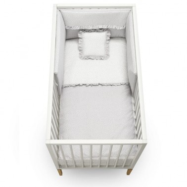 Pack de colcha con relleno desenfundable y protector de cuna para los barrotes. Incluye un cojín para decorar la cuna.