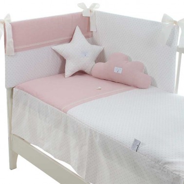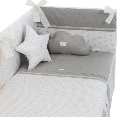 Conjunto de colcha y protector de cuna de 60x120 y cuna de 70x140 modelo Lino de Uzturre en cuatro colores disponibles.