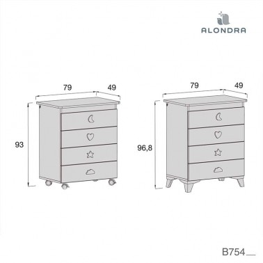 Cómoda con bañera incluída con 4 cajones La tienes disponible en varios colores a elegir. Bubble de Alondra.