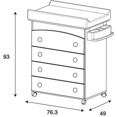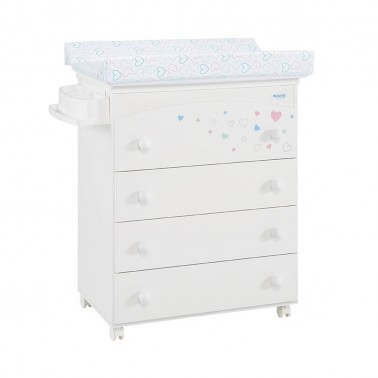 La bañera Valentina tiene en su interior una cómoda cubeta, jabonera y desagüe. En la parte superior, incorpora un práctico cambiador de plástico con corazones multicolor. Ruedas incorporadas, para facilitar su movilidad. No incluye la funda de cambiador.
