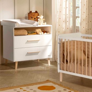 Una cómoda de tendencia, en blanco y natural. De la colección Trevi de Micuna