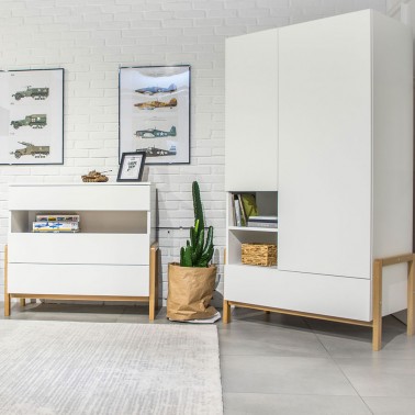 Cómoda en color blanco combinado con madera, modelo Victor de Kocot Kids.