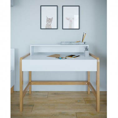 Escritorio en color blanco combinado con madera, modelo Victor de Kocot Kids.