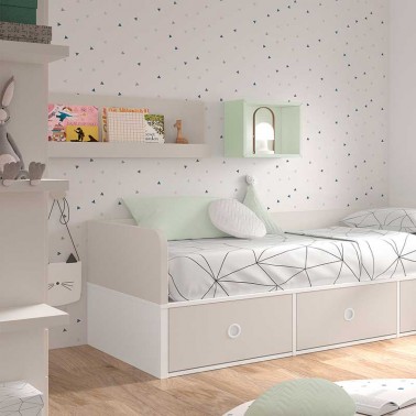 La estructura está realizada en tablero melamínico: es un tablero de aglomerado de partículas de madera con un revestimiento de melamina que da color y vida al mueble.