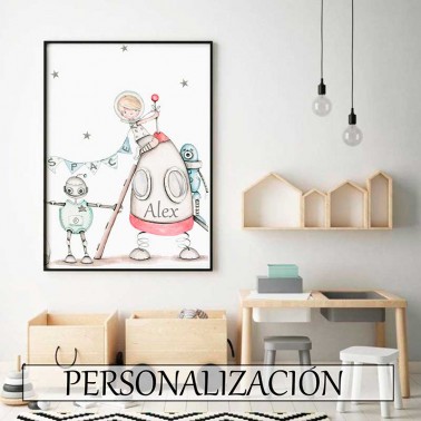 No olvide guardar su personalización para poder añadir al carritoLámina para habitación infantil modelo COHETE.