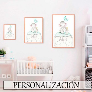 No olvide guardar su personalización para poder añadir al carritoLámina para habitación infantil modelo ELEFANTE MENTA.
