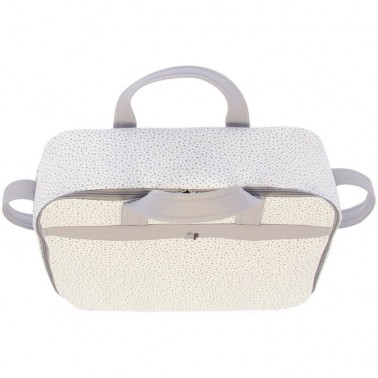 Dispone de dos asas cortas para llevar de la mano y asa larga para colgar del hombro.