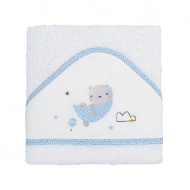 Maxicapa de baño de la colección Volare Azul en color blanco con remate en azul.