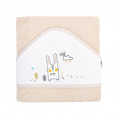 Maxicapa de baño de la colección Funny en color lino con capucha en blanco.