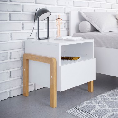 Una mesita de diseño minimalista, práctica para cualquier dormitorio. Resistente y atemporal.