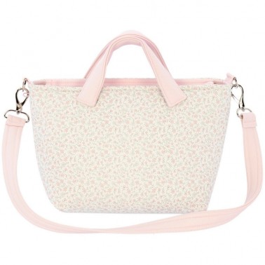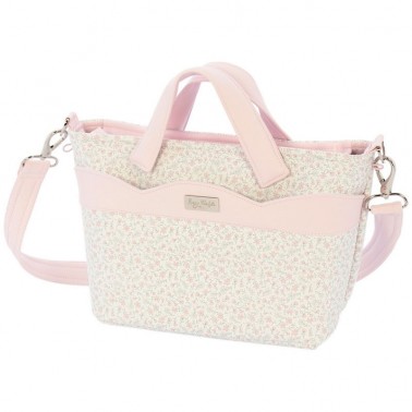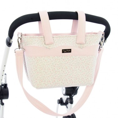 Bolso mini talega para el carrito Azucena, en estampado flores en gris y rosa.