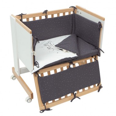 Minicuna de colecho con colchón y vestidura textil con protectores incluidos de la colección Guau de Bimbidreams.