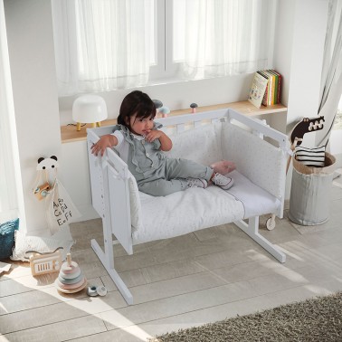 Disponible en 3 combinaciones de color, para que elijas la que más se adapte al ambiente de la habitación del bebe; blanco-blanco, blanco-gris y blanco-arena.