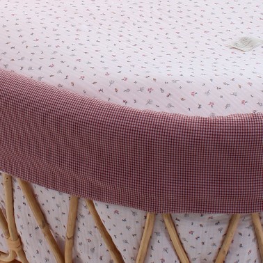 La vestidura textil la tienes disponible en estampado liberty combinada con vichy gris o micro vichy rosa remolacha. Incluye la colcha.