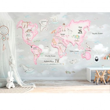 Mural Mapa Mundi Rosa fondo gris