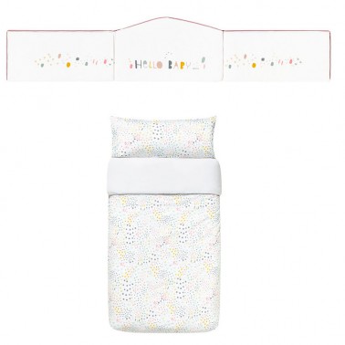 Conjunto formado por funda nórdica y protector para los barrotes, de la colección Bloom de Babyclic.
