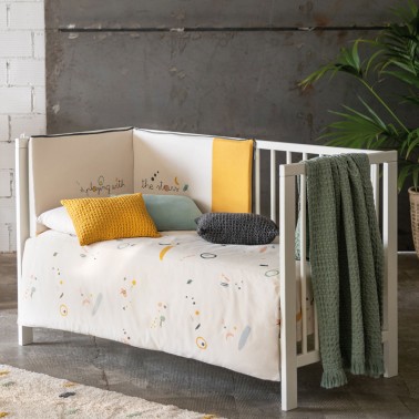 Conjunto formado por funda nórdica y protector para los barrotes, de la colección Universo de Babyclic.