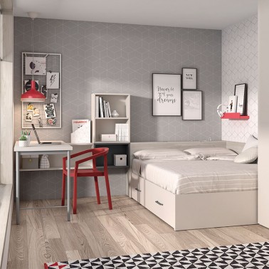 Papel pintado de pared para dormitorios infantiles y juveniles, modelo Box sobre fondo creta.