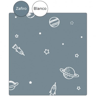 Papel pintado de pared para dormitorios infantiles y juveniles, modelo Espacio sobre fondo Zafiro