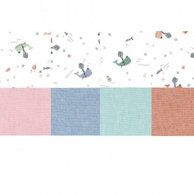 Exterior tejido lino con nervios verticales y estampado ballenas algodón orgánico en el interior. Cuatro colores disponibles.