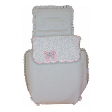 Saco de coche o capazo modelo Naflor en pique Nápoles combinado con estampado floral. Es reversible.
