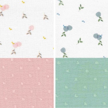 Exterior tejido bámbula con efecto plumeti de algodón en rosa o verde menta.