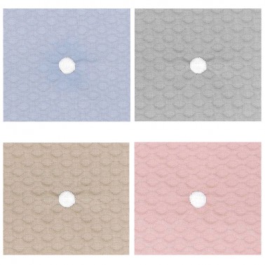 Es saco que combina dos tejidos: piqué bordado con bodoques y piqué rombo.
